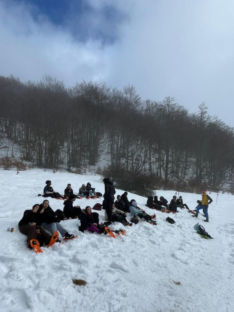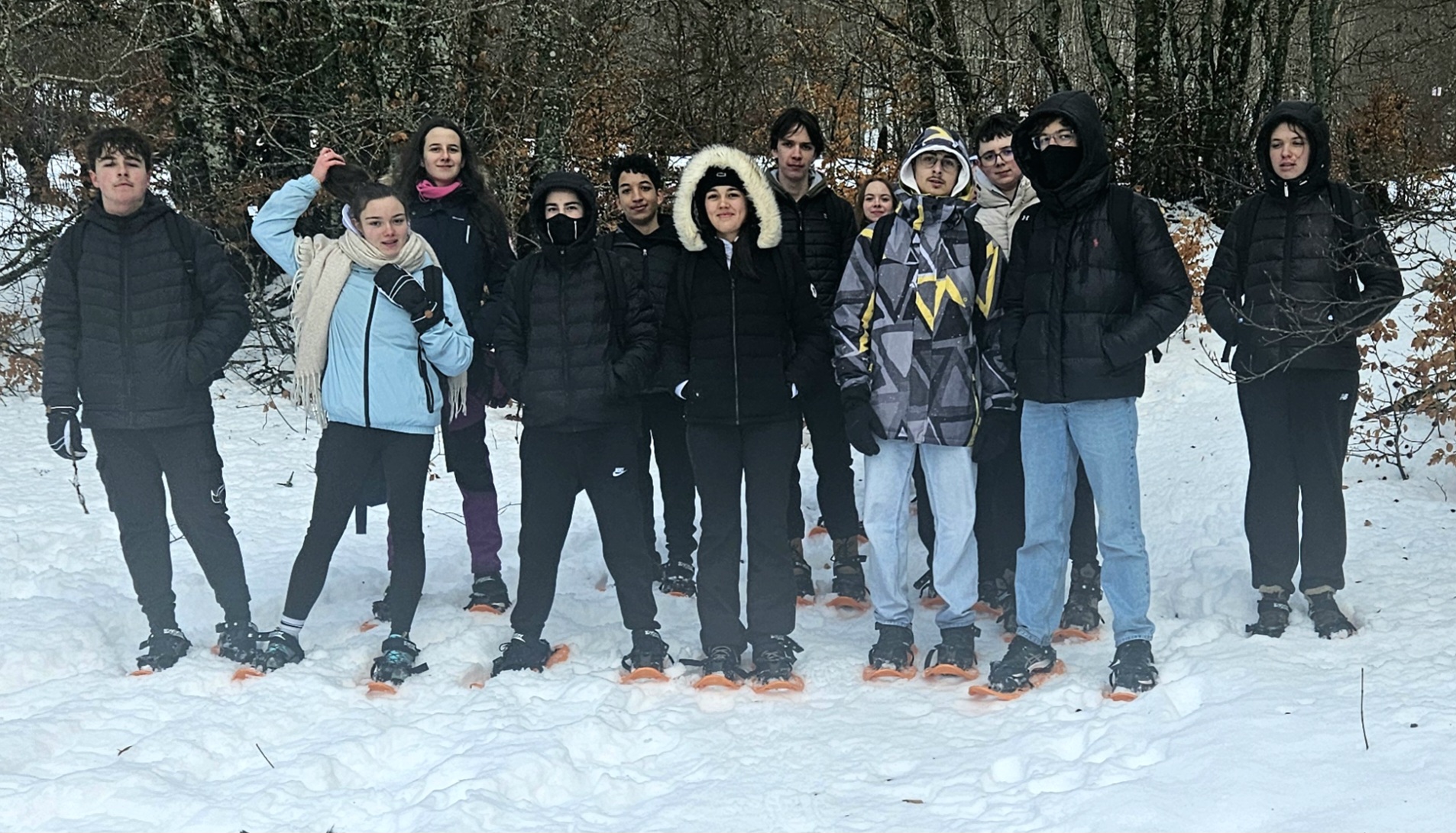 Randonnée en raquettes sur les hauteurs des Plans d'Hotonnes (Plateau du Retord). De la neige mais aussi des nuages ! Pas de vue sur la chaîne des Alpes mais une nouvelle expérience pour beaucoup, vécue dans la bonne humeur et l'entraide !
